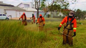 Estão sendo realizados serviços de roçagem, capina e varrição
