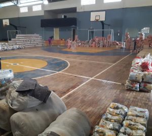 Alimentos, sucos, presentes, dentre outros, sendo reunidos para doação nesta terça-feira, 14.