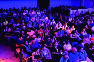 Legenda: Plateia lotada vibrou e se divertiu com as apresentações do FestCom 2025, que celebrou o humor e o talento araguarino – Crédito Foto: Alberto Morais.