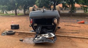Conforme o boletim de ocorrência, o condutor de 34 anos perdeu o controle direcional ao tentar desviar de um buraco na via, atingiu o meio fio e subiu na calçada, acertando a cerca de proteção do quartel e capotando em seguida.