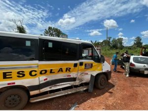Acidente entre van escolar e carro de passeio deixa passageira com ferimentos