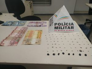 Dinheiro e entorpecentes apreendidos com os menores de idade