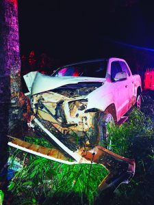 Agricultor se fere ao sair da pista e bater caminhonete em árvore