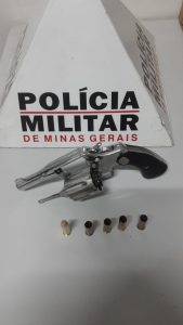O revólver calibre 38 foi apreendido, juntamente com as munições.