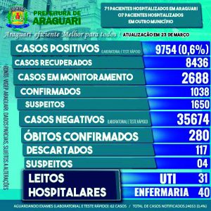 Boletim epidemiológico municipal desta terça, 23