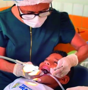 Durante as visitas, são realizados exames, limpezas, ações educativas, orientações sobre higiene bucal e, principalmente, o Tratamento Restaurador Atraumático (ART). Esse procedimento moderno, indolor e sem necessidade de anestesia remove apenas o tecido comprometido e recupera o dente com o auxílio de um cimento especial que libera flúor. Essa proteção adicional cria uma barreira contra o avanço da cárie, permitindo que cada criança desenvolva um sorriso mais forte, saudável e livre de dor.