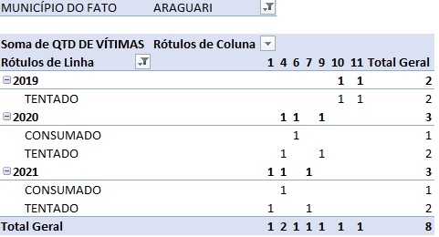 No município de Araguari foram registrados, no ano passado, três casos de feminicídios, um consumado e dois tentados, mesma situação de 2020. Já em 2022, nos cinco primeiros meses, não houve nenhuma ocorrência desse tipo, de acordo com os dados abertos da Secretaria de Estado de Justiça e Segurança Pública (Seds/MG).