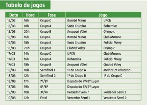 A: Sada Cruzeiro (BRA), Policial Voley (ARG) e Bohemios (URU);
