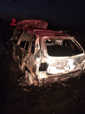 Automóvel pega fogo em rodovia após ser apreendido em Araguari