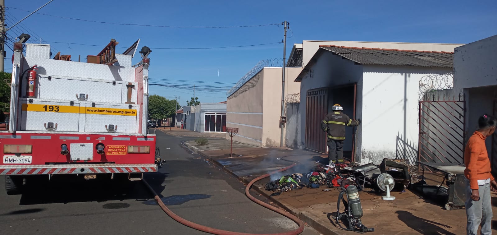 A solicitação ocorreu na rua José Tiradentes de Lima, onde as moradoras, duas idosas, se encontrava do lado de fora da casa. Segundo elas, o incêndio se iniciou no quarto e se espalhou pelo resto do imóvel, provavelmente causado por uma bituca de cigarro que caiu sobre um amontoado de roupas.