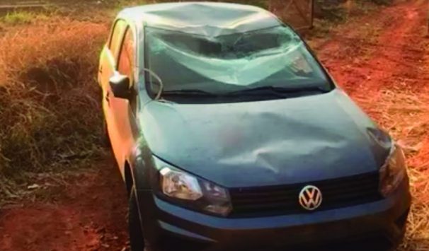 Gol utilizado pelos suspeitos foi encontrado capotado perto de uma linha férrea