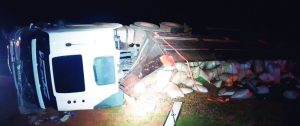 Uma carreta carregada com mamonas ensacadas tombou na BR-050, na altura do km 221, na madrugada da última segunda-feira, 20, por volta das 03h30. Segundo a ocorrência, o motorista apresentava ferimentos leves e foi encaminhado para uma unidade de saúde.