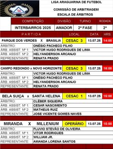 A segunda rodada da segunda fase do Campeonato Interbairros será realizada neste domingo, com quatro jogos. A primeira rodada foi marcada pelo equilíbrio, e apenas o Santa Helena conseguiu sair com a vitória. O Cesac 3, o local mais frequentado pelos torcedores, mais uma vez será palco de rodada dupla.