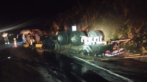 Capotamento de carreta deixa condutor com ferimentos graves na 050