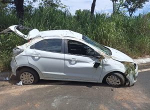 Capotamento de veículo deixa bancária ferida em rodovia de Araguari