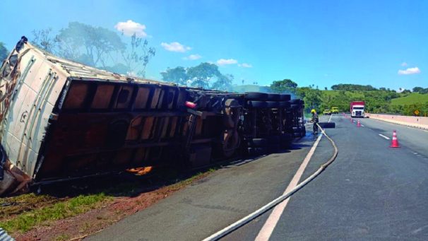 Aos policiais rodoviários, o condutor teria relatado que perdeu o controle da carreta, saindo da pista e tombado o veículo. Felizmente, ele escapou ileso, sem ferimentos, mas a carga ficou parcialmente destruída. A pista precisou ser interditada durante o atendimento.