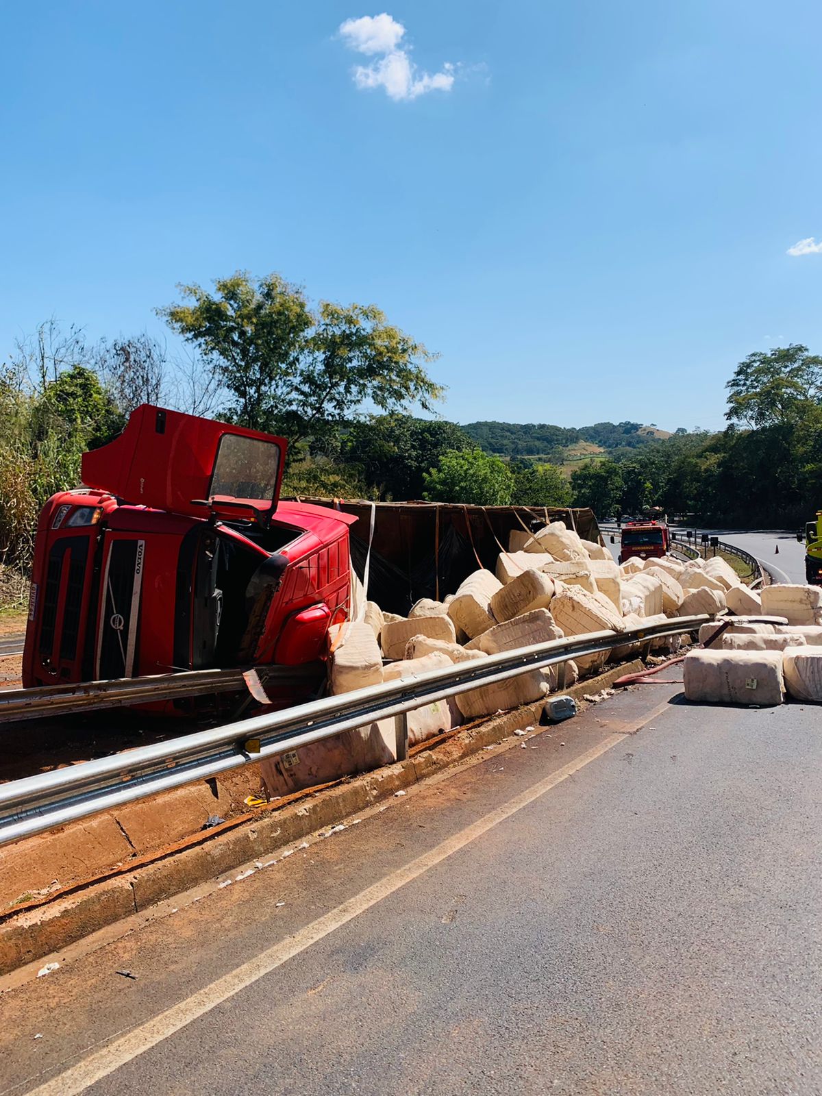 Carreta carregada com algodão tomba em rodovia de Araguari