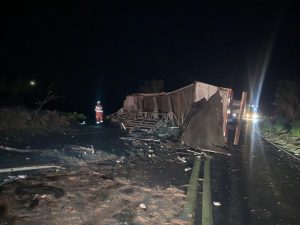 Aos socorristas, o motorista teria informado que perdeu os freios. Quando tentou engatar marcha, percebeu que a caixa de câmbio estava quebrada, não conseguindo diminuir a velocidade. A carreta invadiu a pista contrária e tombou, por pouco não atingindo outros veículos.