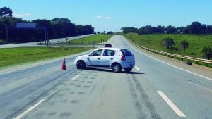Casal de idosos passa susto após bater veículo em obstáculo na BR050