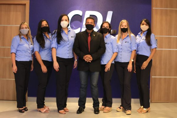Presidente da CDL Araguari, Pedro Luiz, ao lado de funcionários da entidade