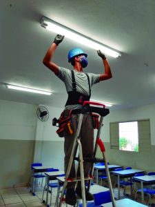 Funcionário da Cemig realiza trocas e instalações na iluminação de colégios públicos