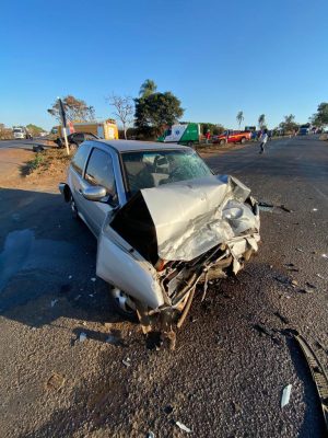 Colisão no trevo entre Indianópolis e Araguari deixa duas pessoas gravemente feridas