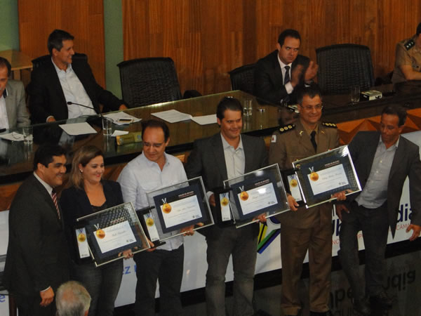 qui, 8 de janeiro de 2015 00:32A Área de Segurança Pública Integrada – AISP Rural, em novembro, recebeu uma moção de aplausos na Câmara Municipal de Uberlândia pelo serviço prestado à comunidade. Na ocasião, policiais civis e militares, além de funcionários e diretores do Sindicato Rural de Uberlândia, estiveram presentes para receber a homenagem. Em dezembro, foi a vez do Sindicato Rural de Uberlândia ser homenageado na despedida do até então presidente da Câmara, Márcio Nobre. O Presidente da entidade, Thiago Soares Fonseca representou o Sindicato.