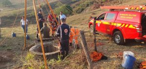 Quando os bombeiros chegaram na fazenda, a equipe do SAMU estava administrando oxigênio por meio de um cilindro pequeno, levado até a vítima. Em seguida, foi montado um sistema de tripé, onde uma militar desceu até o fundo da cisterna para resgatar o homem, que á havia recobrado a consciência, mas não conseguia se mover, pois ficou com as pernas atoladas no barro. Foi feita uma amarração com cordas e a vítima foi içada, consciente, orientada, sem ferimentos aparentes.