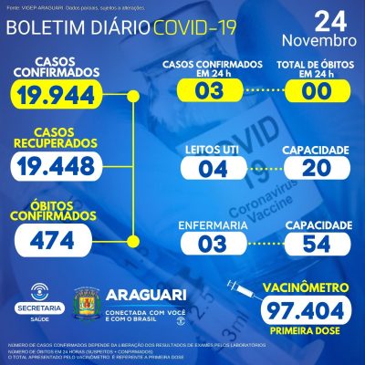 Boletim epidemiológico divulgado nesta quarta-feira, 24.