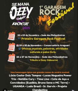O mês de novembro em Araguari será palco de uma verdadeira imersão no universo do rock com a realização da SEMANA OZZY ROCK 2025, um evento que celebra a cultura rock and roll e impulsiona a cena independente local.