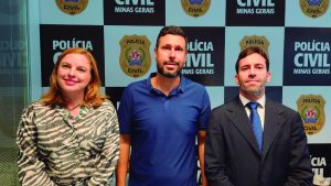 Legenda: Deputado estadual Raul Belém, delegado Marcelo Oliva Galizzi e a chefe da Polícia Civil de Minas Gerais, Letícia Gambogi.