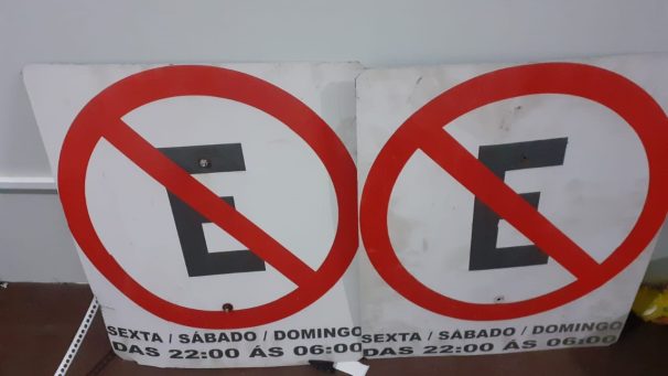 Dois homens, de 28 e 33 anos, respectivamente, foram presos em flagrante por suspeita de receptação de placas de sinalização de “Proibido Estacionar”, nesta quarta-feira, 29, em Araguari.