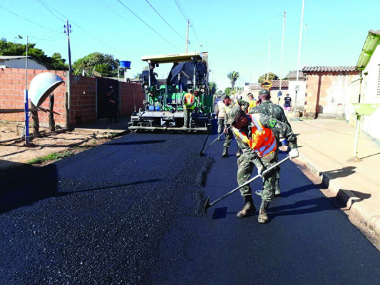 Equipes da secretaria e do 2º Batalhão Ferroviário deram início ao asfaltamento das ruas em Amanhece