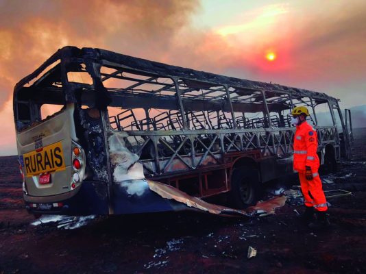 Incêndio atinge ônibus com passageiros e faz vítima fatal nas proximidades de Araguari