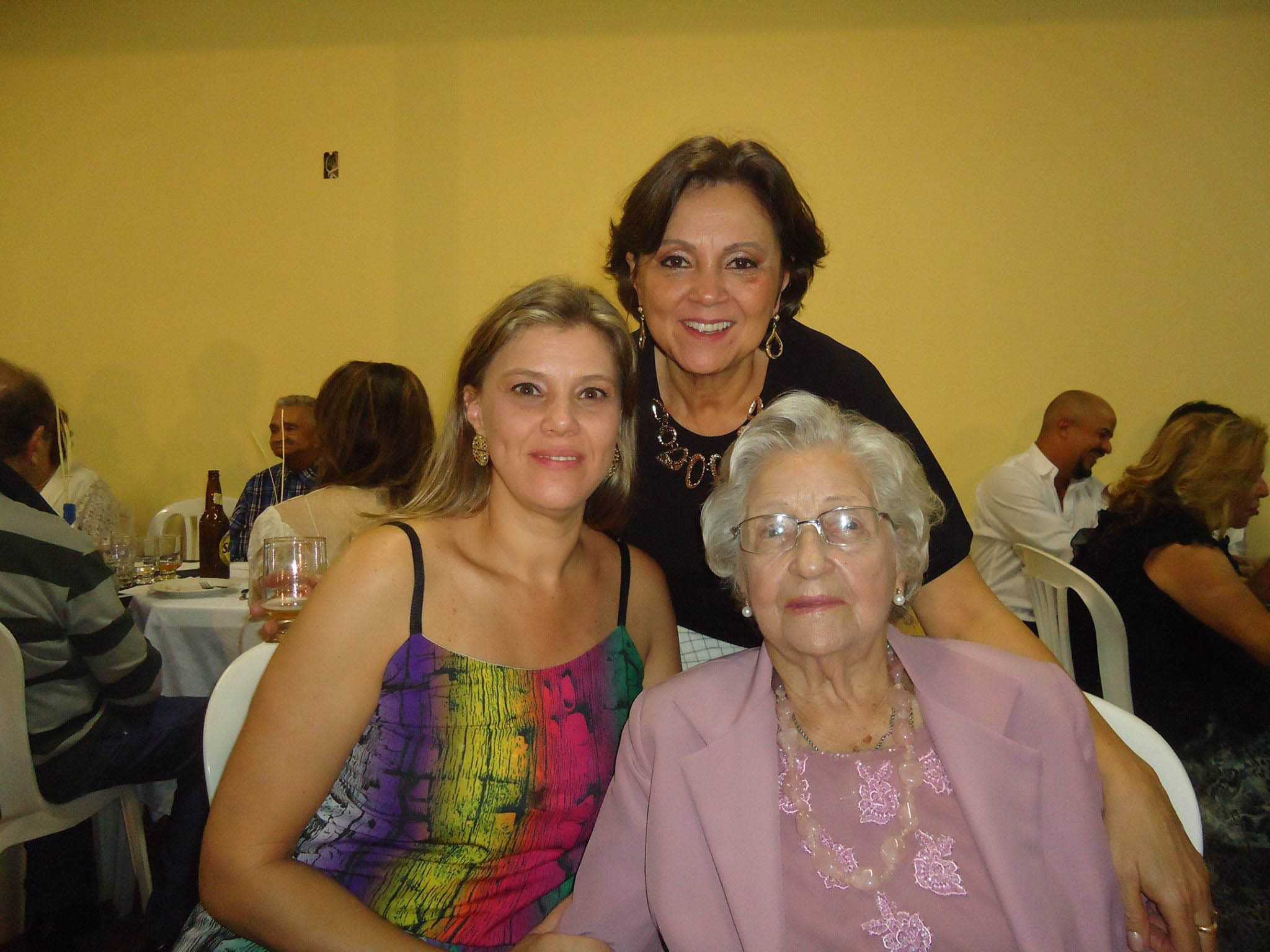 Um click mostra Daniela, Suzeli e a mãe do aniversariante Dona Neca.