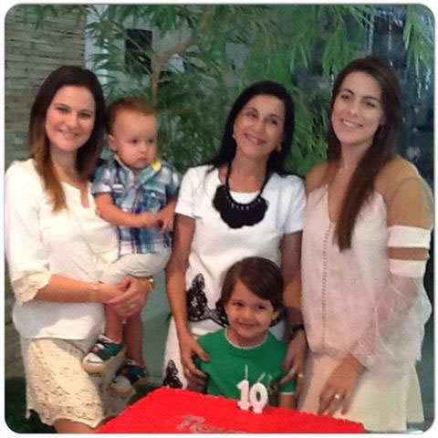 Fixando focos da esquerda para a direita a serena e delicada Mariana Cury de Moraes Carraro Arantes, trazendo ao colo o pequeno Gustavo, bem juntinho da vovó Norma o gatinho Gabriel e à direita o charme intenso de Nathália Cury de Moraes Azevedo.
