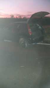 Enquanto uma guarnição verificava o interior da loja, outras foram acionadas e perseguiram o veículo suspeito, que evadiu por uma via rural rumo à BR-050, chegando a passar pela praça de pedágio. A PM de Uberlândia foi comunicada e fez um cerco bloqueio no anel viário, tendo o condutor do carro realizado uma manobra brusca ao avistar a barreira policial. Assim, ele perdeu o controle direcional e colidiu contra um barranco na lateral da rodovia.