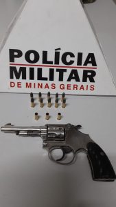 Revólver e munições apreendidos com o adolescente