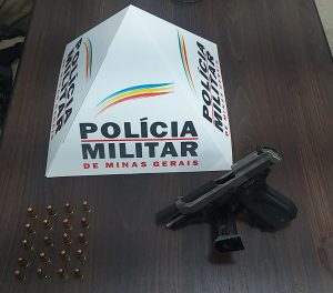 Ao efetuarem buscas, eles localizaram uma munição calibre 380. Em ato contínuo, encontraram uma pistola do mesmo calibre e mais 19 munições intactas.