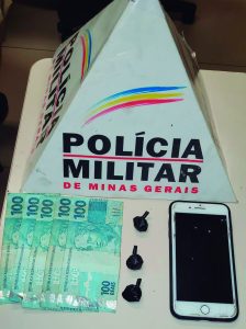 Após diligências, os policiais encontraram três dolas de uma substância análoga à cocaína, 500 reais em notas de 100 e um aparelho celular. O jovem recebeu voz de prisão pelo crime de tráfico de drogas e foi levado para a delegacia de plantão da Comarca junto com os materiais apreendidos.
