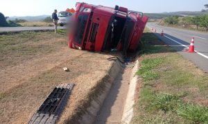 Mais um tombamento de carreta registrado na principal rodovia federal da região