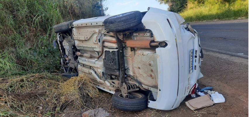 Motorista se assusta em curva perigosa e capota veículo na MG-223