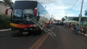 De acordo com os relatos de testemunhas, o condutor do automóvel Ecosport realizava ultrapassagem em local proibido, resultando em uma colisão frontal com um ônibus. Ressalta-se que, uma escada, que estava em cima do veículo, foi arremessada no para-brisa do ônibus, sem atingir o motorista.