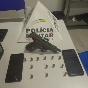 Os policiais apreenderam o armamento e dois aparelhos celulares. O automóvel foi removido para um pátio credenciado pelo Detran de Minas Gerais.
