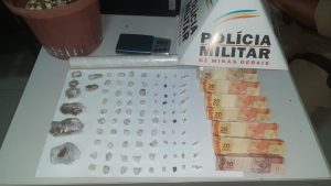 Em diligências no imóvel, os militares encontraram mais porções de substâncias análogas à maconha e ao crack, uma balança de precisão, 160 reais em dinheiro e um vaso de planta com um pé de substância semelhante à maconha.
