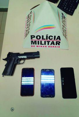 Telefones e simulacro de arma de fogo apreendidos pelos militares