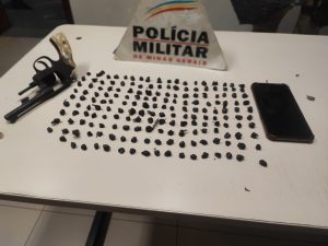 Com o adolescente, foram apreendidas 179 pedras de substância análoga ao crack. Após buscas, a equipe localizou um aparelho celular e um revólver, calibre 32. O menor e o material foram encaminhados à delegacia de plantão da Comarca.