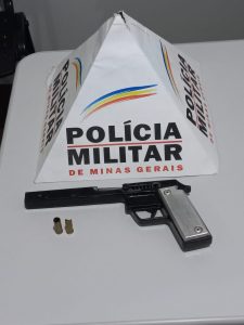 Ao efetuarem busca pessoal, os militares encontraram na cintura do rapaz de 22 anos uma arma de fogo de fabricação caseira, tipo pistola, e no bolso da calça, duas cápsulas deflagradas de munição calibre 38.