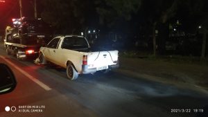 Os rastreamentos prosseguiram no bairro Santa Mônica, onde foram localizados dois pneus furtados e um suspeito de ter adquiridos os produtos do crime, também conhecido no meio policial por envolvimento em delitos contra o patrimônio e em associações criminosas de desmanche de veículos. O veículo Fiat/Toro de sua propriedade foi removido para um pátio credenciado pela Polícia Civil, uma vez que apresentava suspeita de adulteração na marcação do chassi.