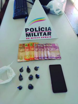 Na busca pessoal, foram encontrados um invólucro com oito papelotes de substância análoga à cocaína, um aparelho celular e 125 reais em notas diversas, possivelmente arrecadadas no comércio do entorpecente.